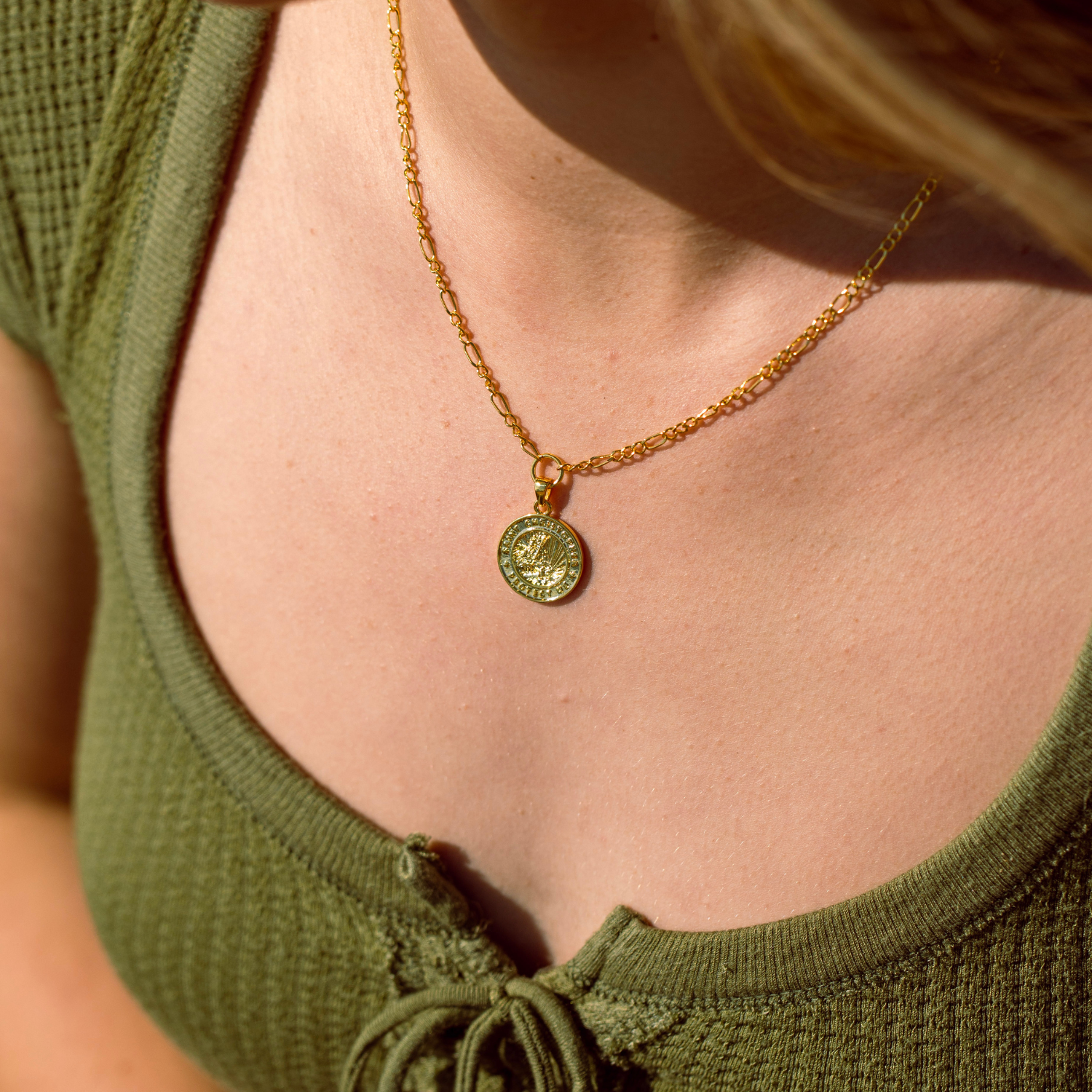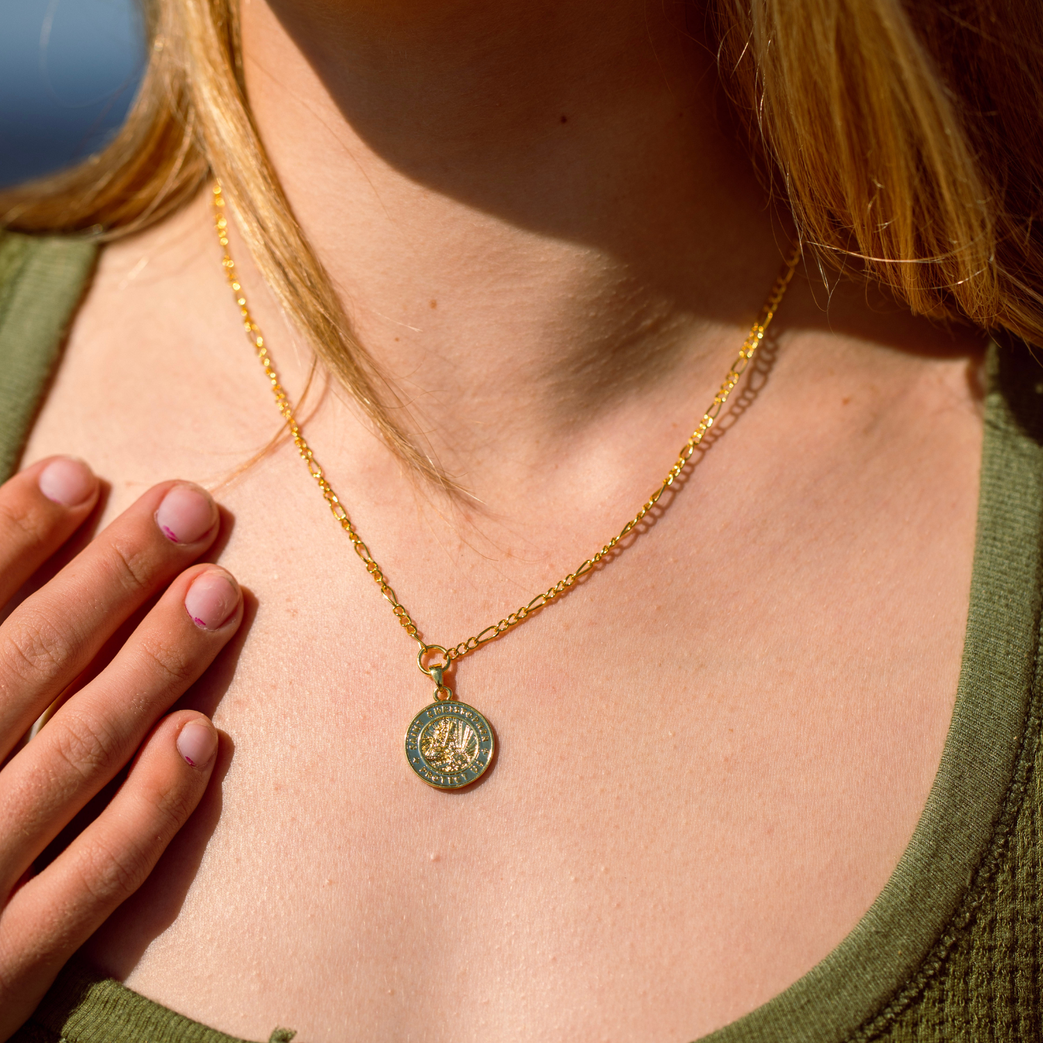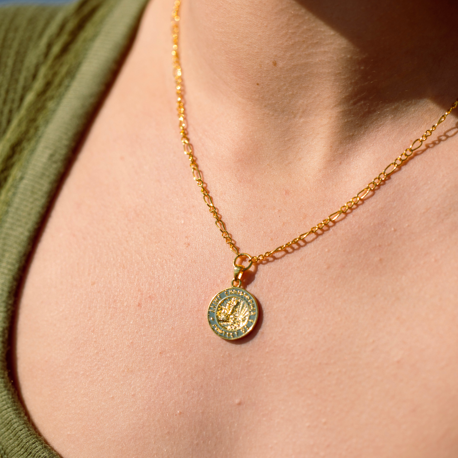 Vi presentiamo il nostro pendente con medaglione in oro raffigurante San Cristoforo, delicatamente abbinato a un'elegante catena Figaro, completa di una pratica chiusura a molla. Questa ambita collana è l'epitome di un'eleganza senza tempo e di un significato spirituale. Che la indossiate con altre collane o che la lasciate brillare da sola, è l'accessorio che avete sempre desiderato.