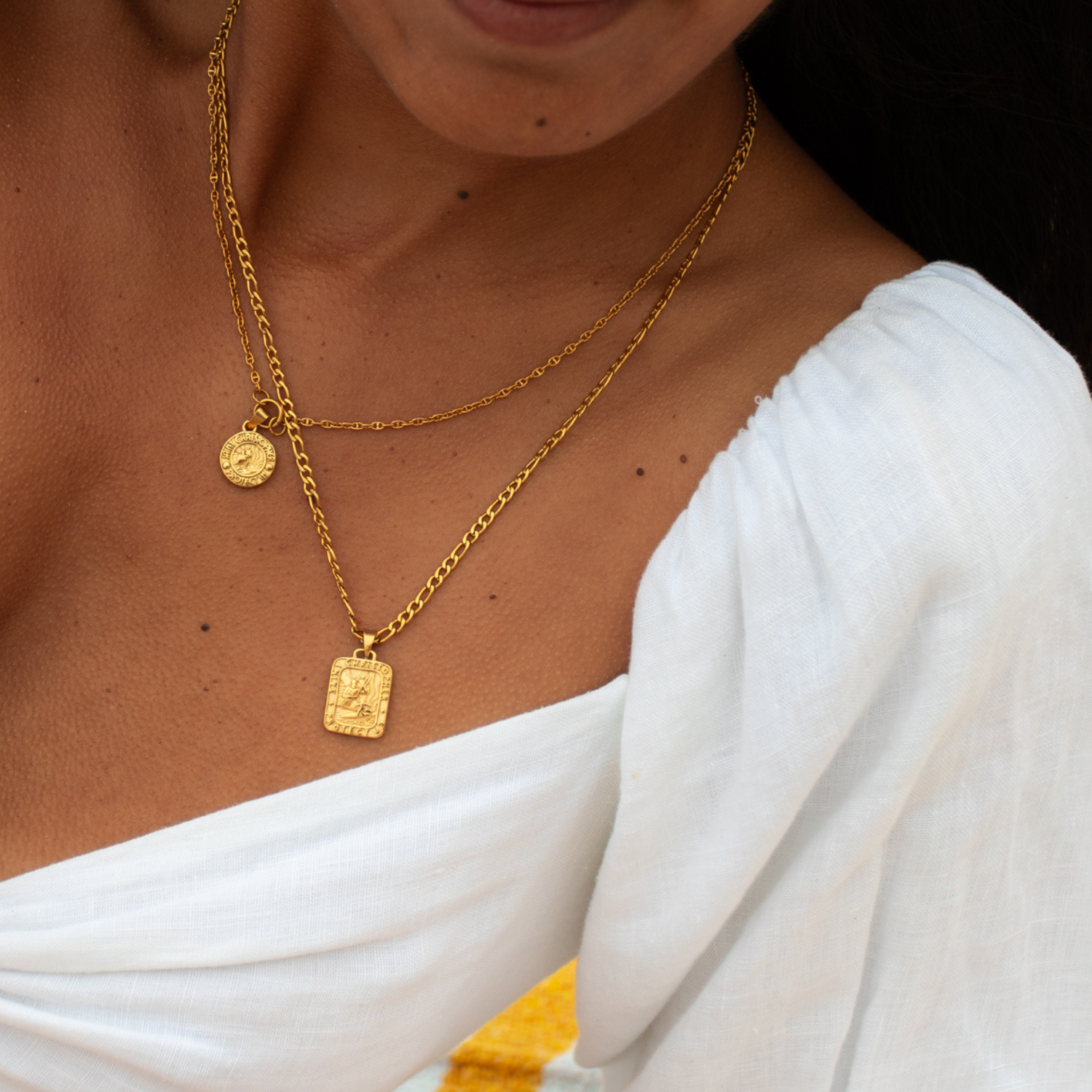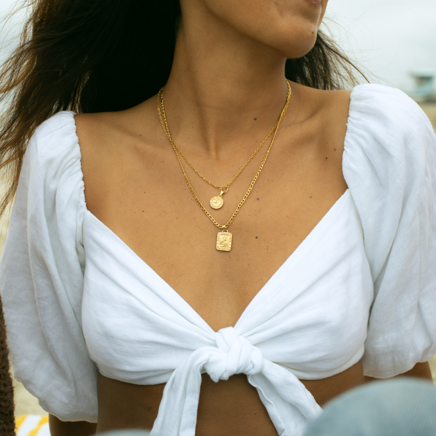 Vi presentiamo la nostra collana Gold Traveler Rectangle: la compagna ideale per chi ama le spiagge baciate dal sole e la brezza salata! Questa collana è caratterizzata da un elegante pendente rettangolare che incarna lo spirito dell'avventura.
