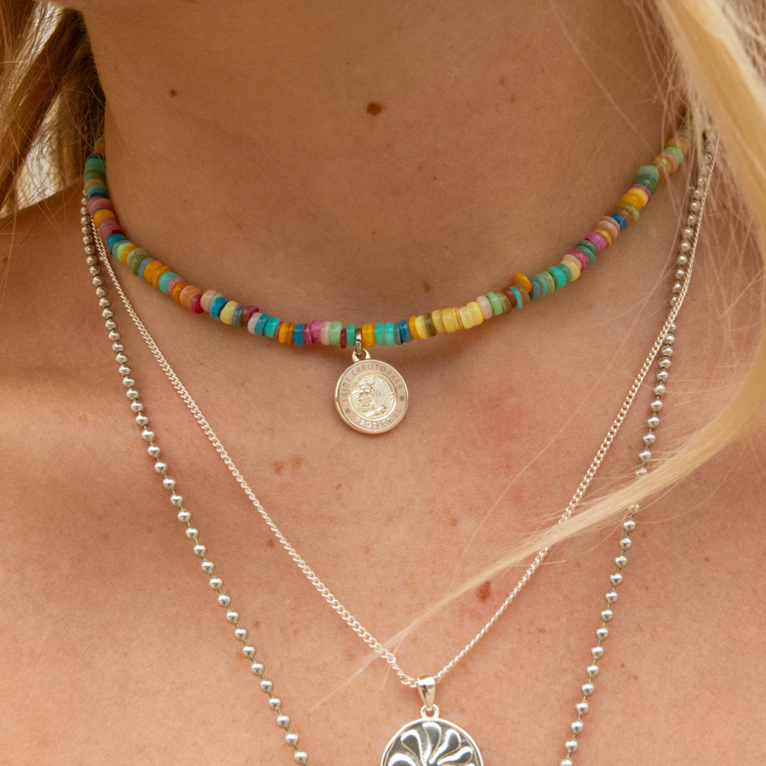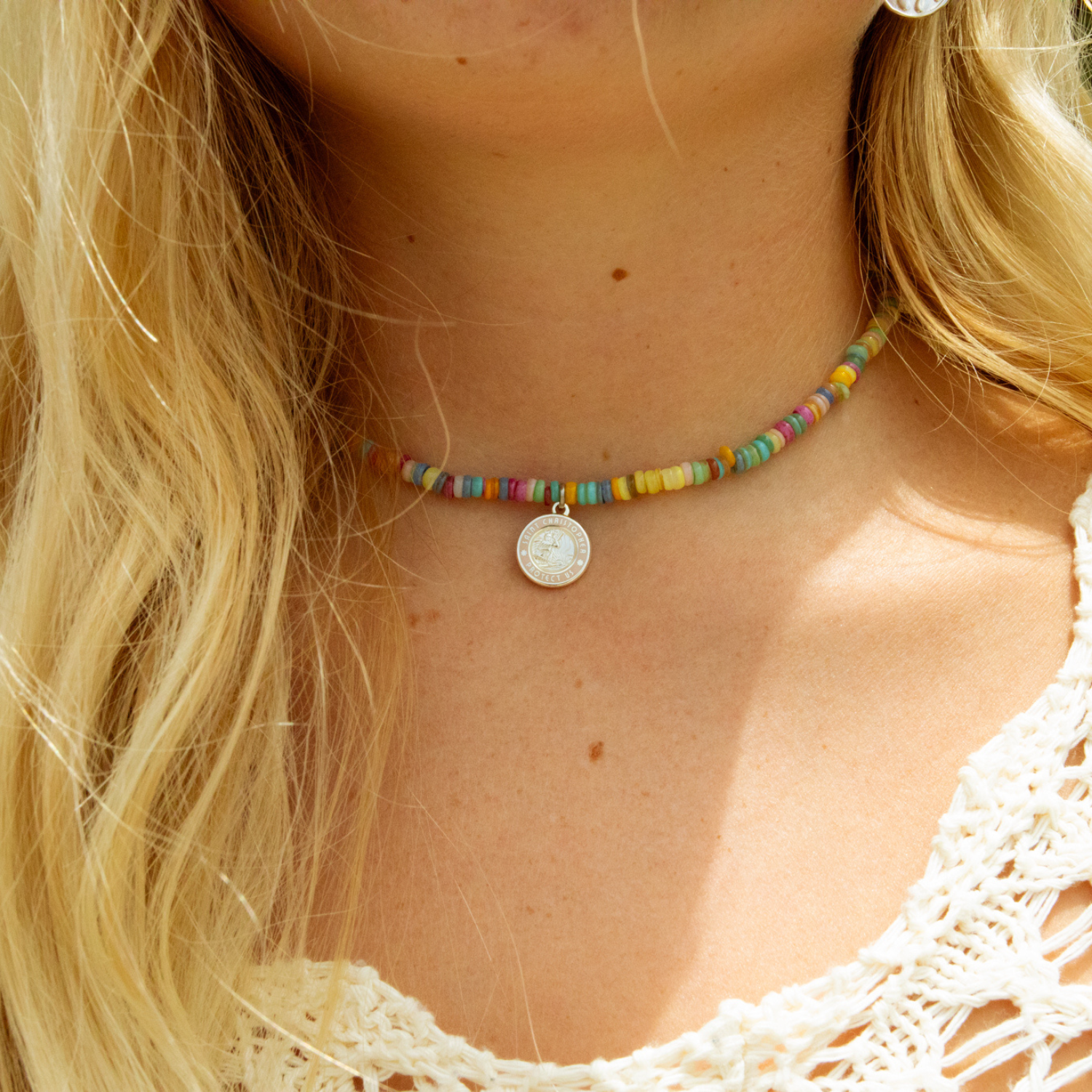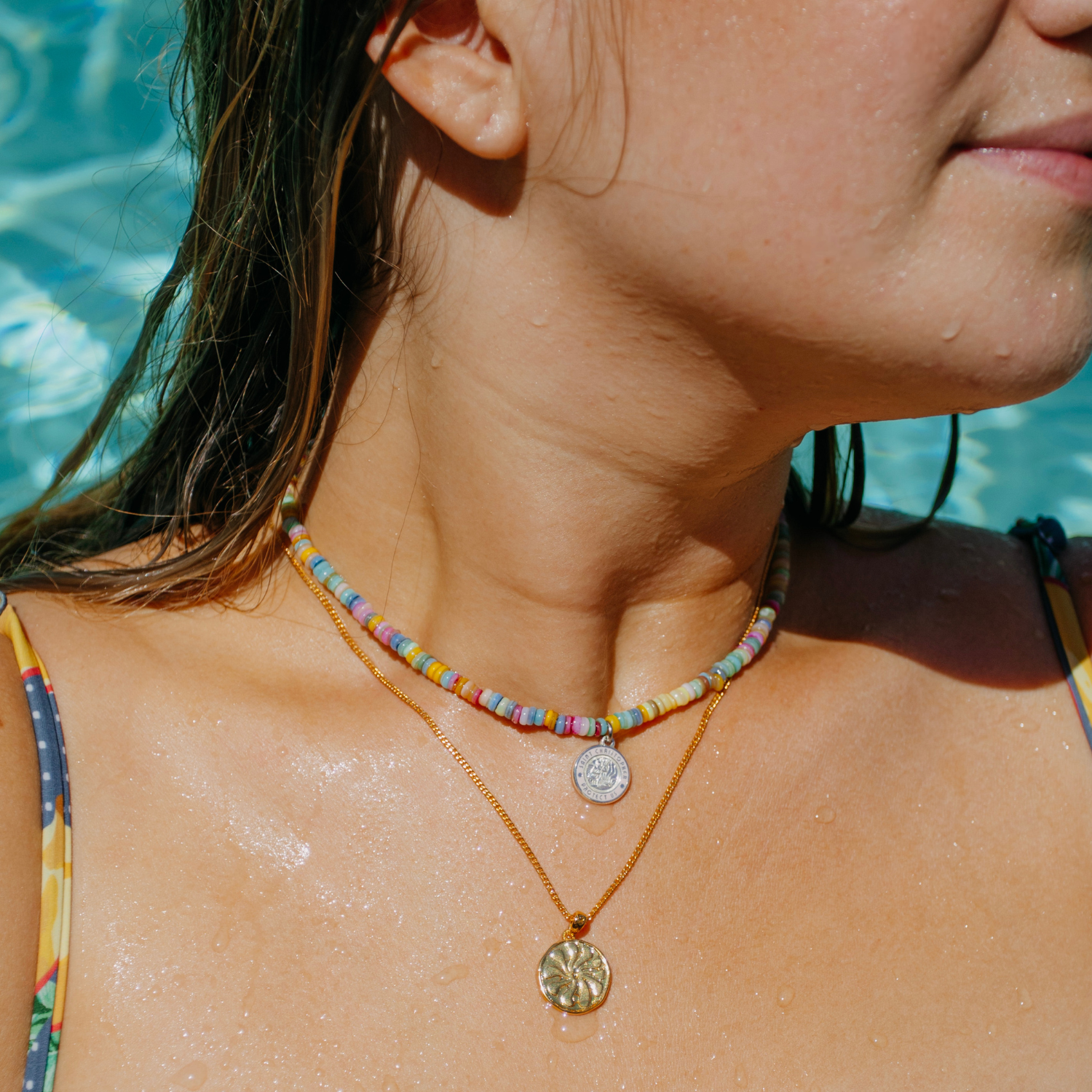 Il girocollo di perline "Tramonti Pastello" è perfetto per l'uso quotidiano o per le uscite estive speciali, che si tratti di un picnic o semplicemente di un tocco di magia pastello nella vostra giornata. Abbinalo ai nostri altri accessori giocosi per un look assolutamente accattivante!