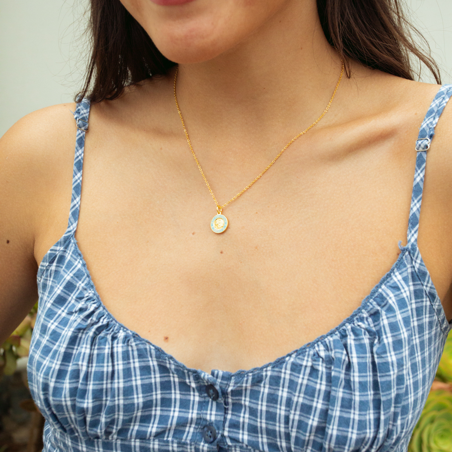 Avete chiesto, vi abbiamo ascoltato! Vi presentiamo la nostra nuova collana di San Cristoforo in oro azzurro. Realizzata con uno splendido bordo in smalto azzurro, questa collana è l'ultima aggiunta alla nostra collezione classica. Ora disponibili in ancora più colori, le nostre collane di San Cristoforo in oro sono perfette per ogni occasione. Disponibili in quantità limitate, quindi affrettatevi!