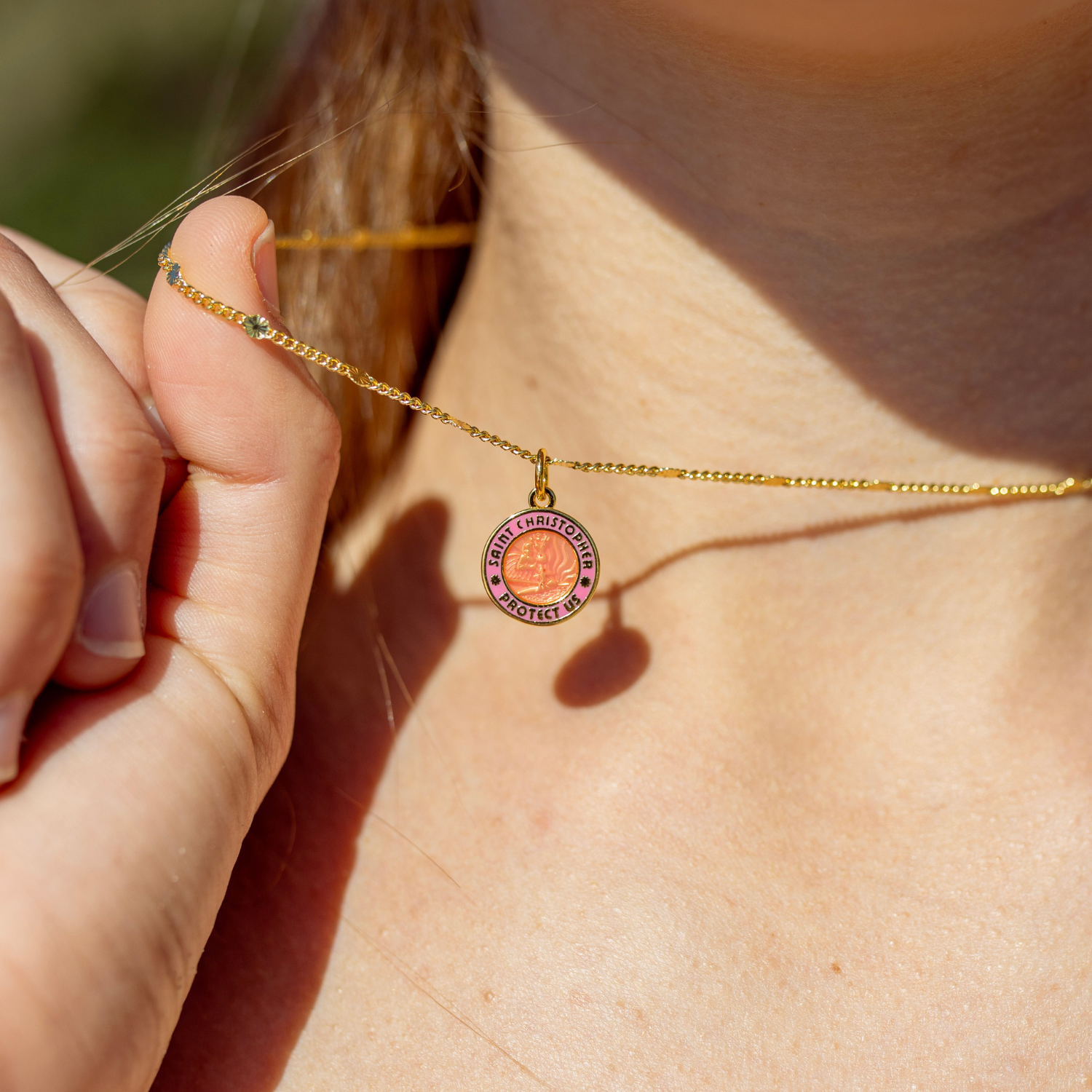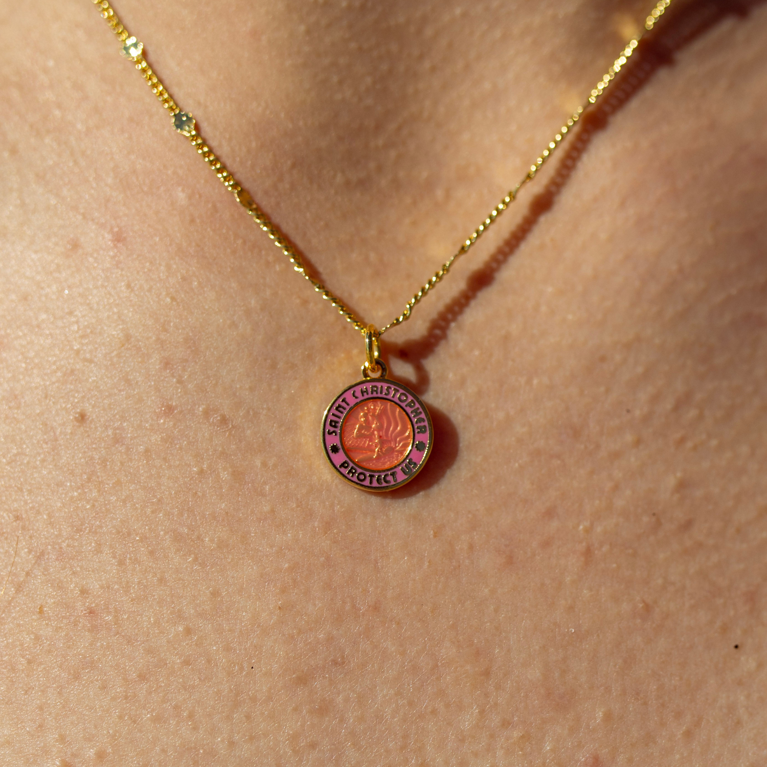 Luminoso, audace e pieno di cuore: il nostro piccolo San Cristoforo in oro/rosa fa parte della nostra collezione di San Valentino. Caratterizzato da un vivace ciondolo rosa raffigurante San Cristoforo su una catenina barbazzale piatta in oro, è una piccola dose di protezione e tante buone vibrazioni, perfetto per chi ti tiene il cuore splendente.