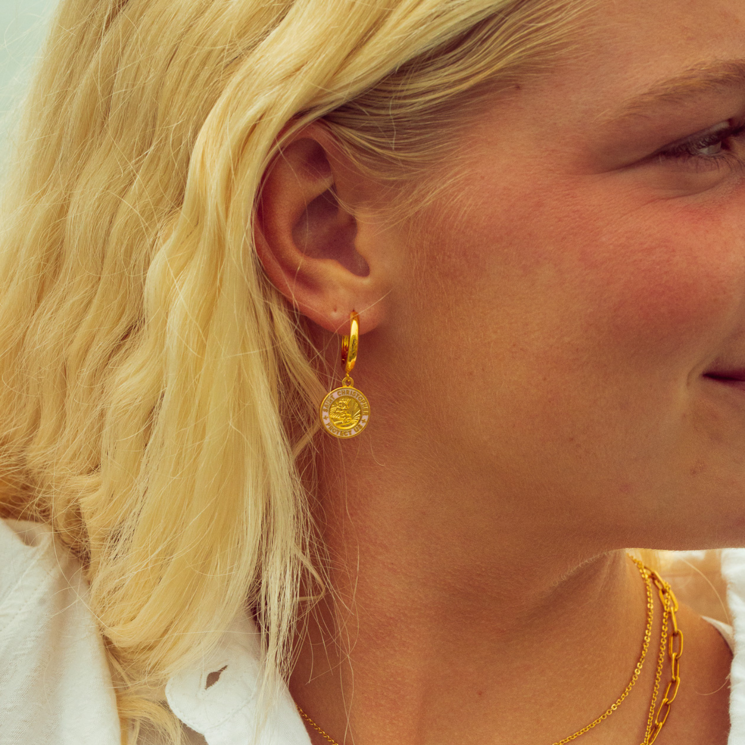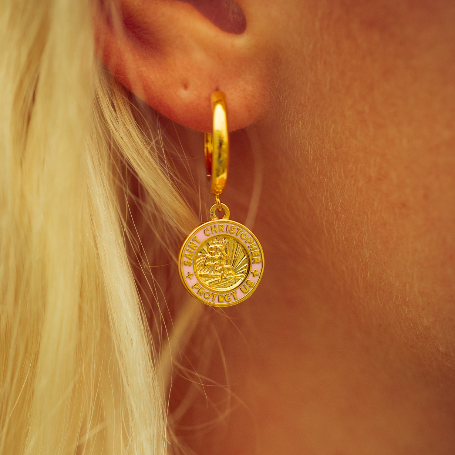 Abbraccia lo spirito di protezione e avventura con i nostri nuovi orecchini San Cristoforo in oro rosa. Caratterizzati dall'iconico simbolo di San Cristoforo, il santo patrono dei viaggiatori, questi orecchini presentano una splendida finitura in smalto rosa incorniciata in oro lucido. Perfetti per chi ama combinare stile e significato, questi orecchini sono un accessorio audace ma elegante da indossare tutti i giorni o nelle occasioni speciali.