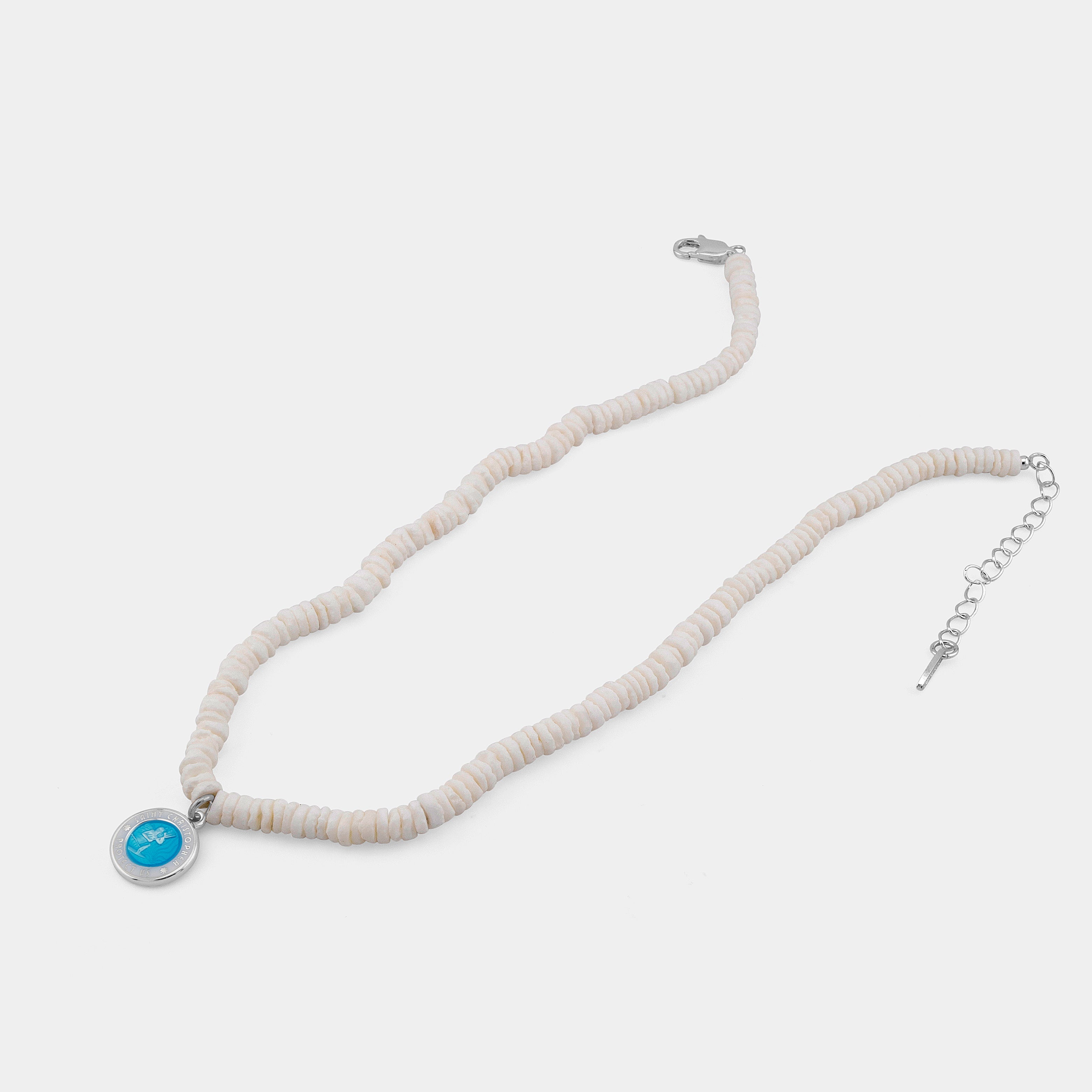 - Presenta un piccolo San Cristoforo color acquamarina/bianco